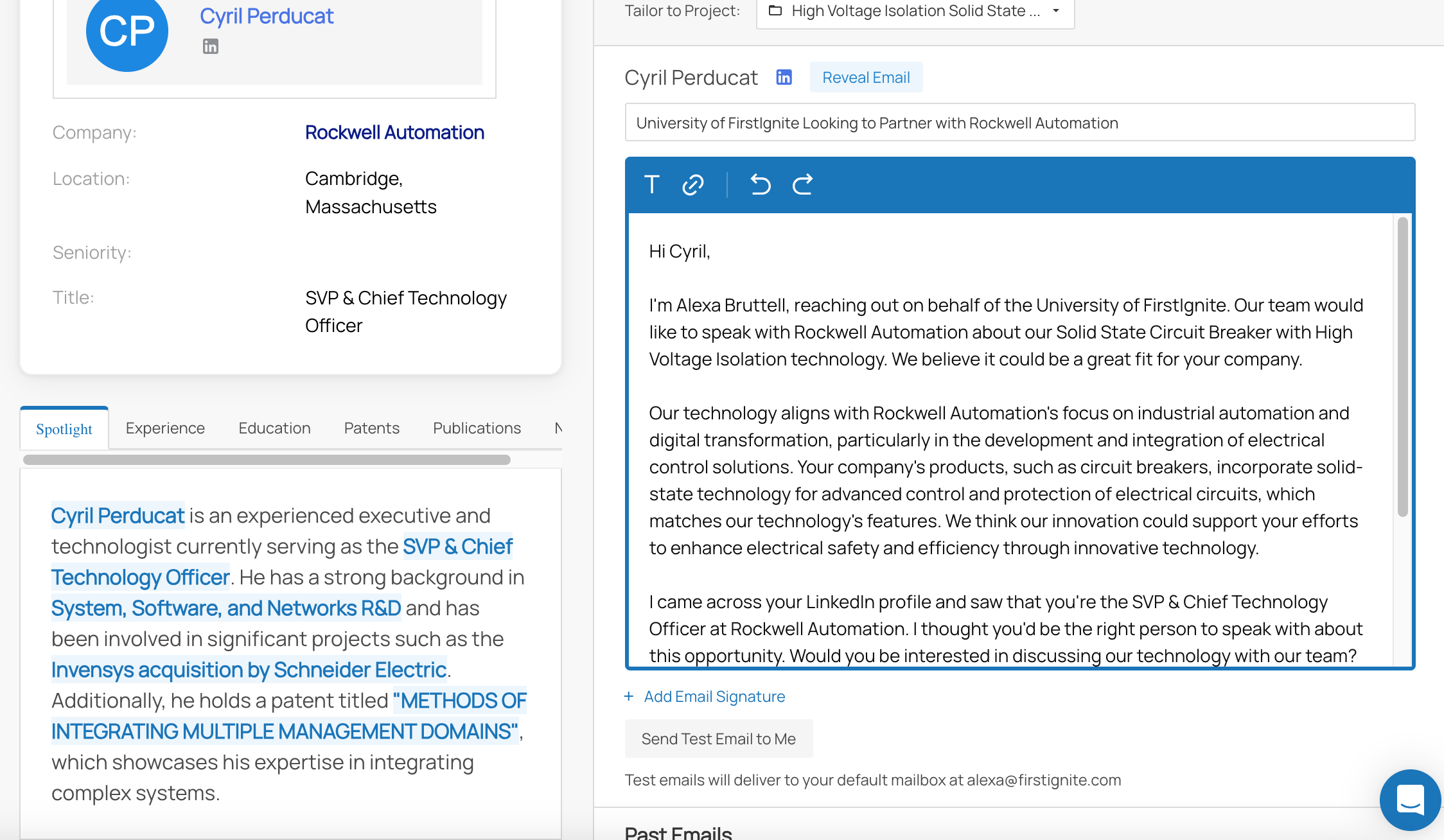Whether you’re looking for a licensee or a new partner to fund research, FirstIgnite’s Autopilot incorporates AI to accomplish all of your prospecting at once, preparing an entire marketing campaign in a matter of minutes. With just one click, Autopilot: